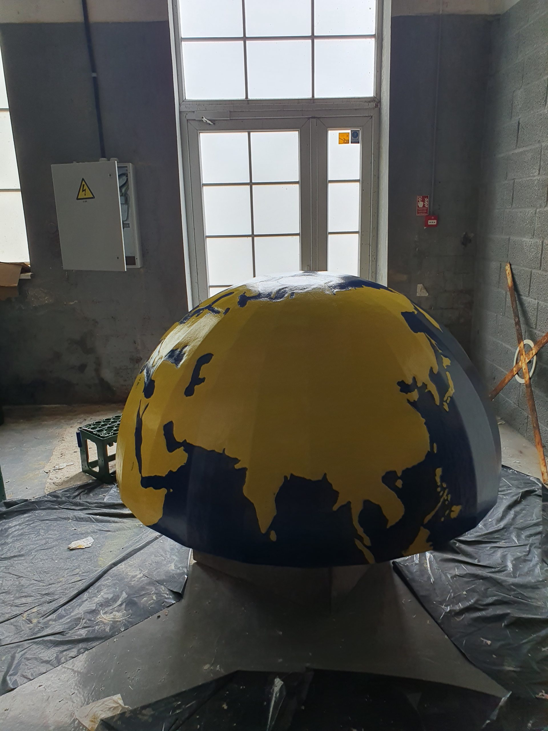 Globuss. Vides mākslas objekts. Engure. Koks, stikla šķiedra